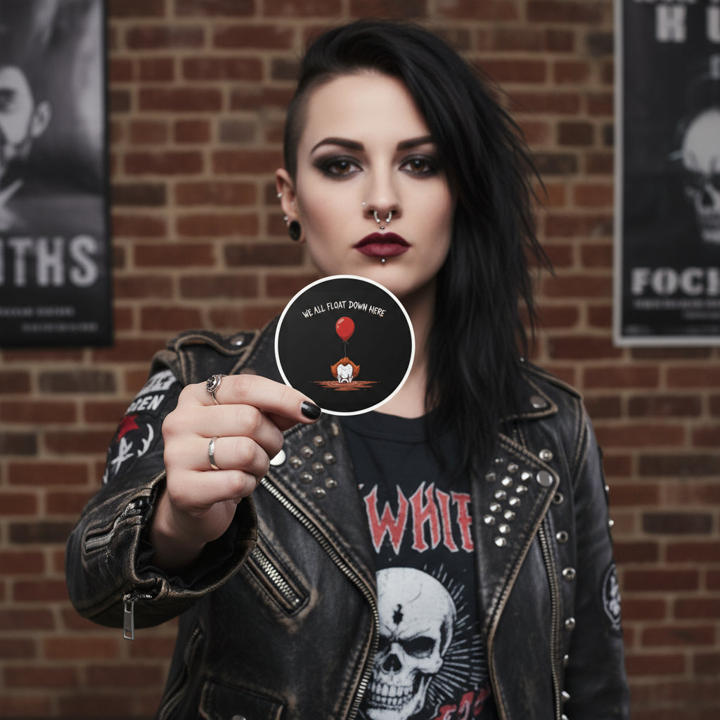 Introducing our Round Vinyl Stickers, designed to bring a splash of creativity to your life! These vibrant stickers feature striking designs that stand out beautifully on any surface. Perfect for personalizing your laptop, water bottle, or notebook, they radiate a playful yet edgy vibe. Perfect for fans of horror literature and films, these stickers make a unique statement and are great for collectors. Ideal for occasions like Halloween, themed parties, or even as fun party favors! The matte finish adds a subtle elegance, making them suitable for both festive and everyday settings. Embrace your quirky side and let your personality shine!