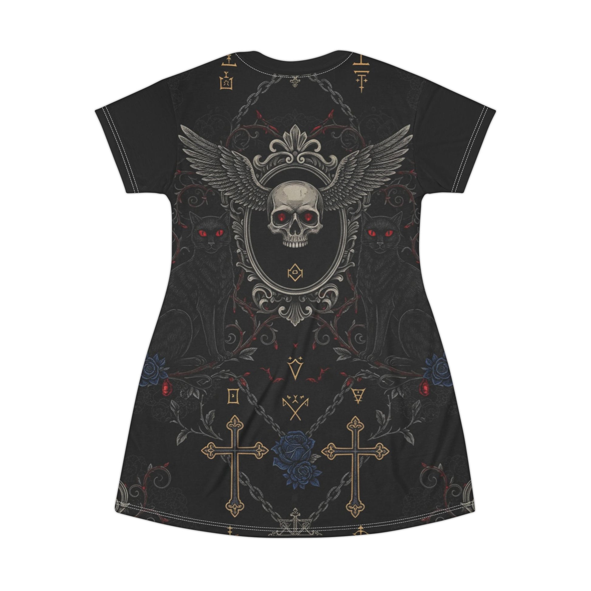 Elevate your wardrobe with this stunning T-Shirt Dress that effortlessly combines comfort and style. Featuring a unique design with intricate details, this dress exudes a bold yet elegant vibe, perfect for making a statement on any occasion. Made from lightweight, breathable fabric, it is ideal for warm-weather outings, casual gatherings, or relaxed weekends at home. Whether you’re dressing it up with chic accessories for a night out or keeping it simple for a laid-back day, this versatile piece fits beautifully into any woman’s collection. Perfect for music festivals, parties, or just enjoying a day out with friends, this T-Shirt Dress is a must-have for those who appreciate individuality and artistic flair. Celebrate your unique style year-round, especially during Halloween and other festive occasions!