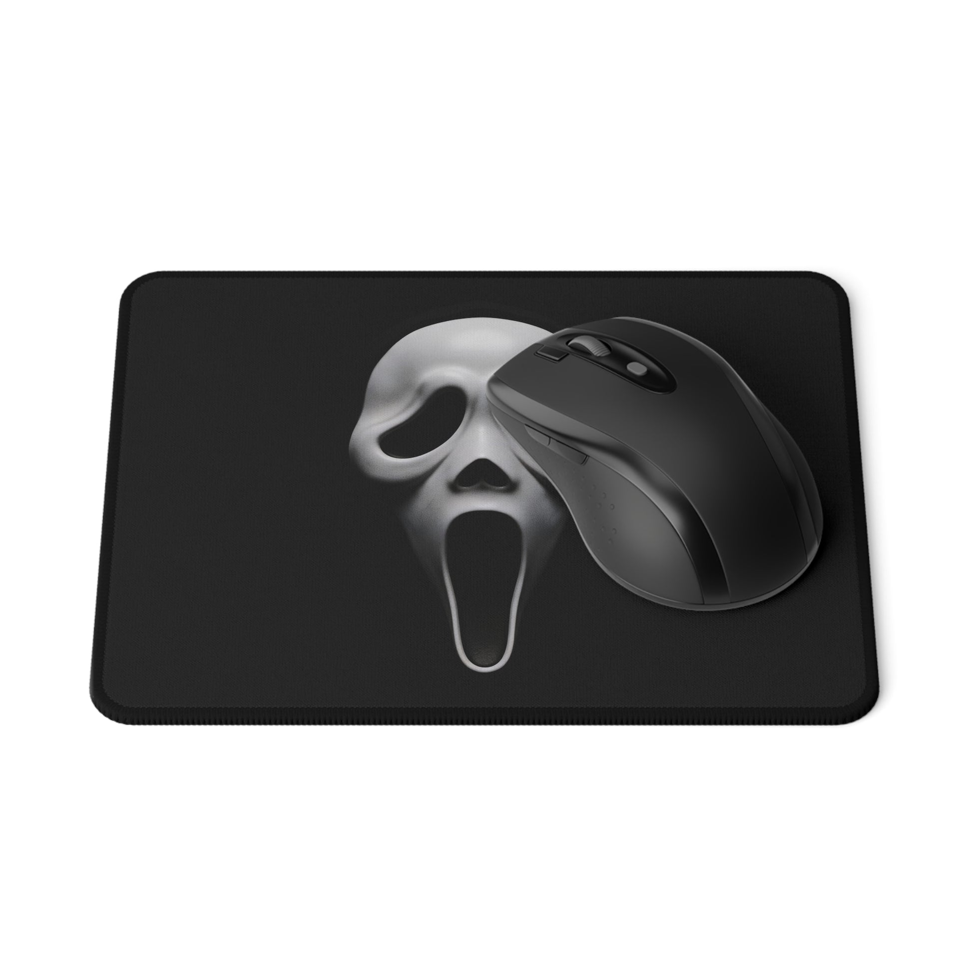 Slide into late-night sessions with a mouse pad that brings a little theatrical chill to your desk. A stark, ghostly mask floats against deep black, giving every click and glide a cinematic, moody edge. The smooth polyester face keeps tracking crisp, while the natural rubber base locks the pad in place so nothing slips during intense plays or focused work. Lightweight and low-profile, it sits close to your desk so your wrist moves freely and your setup keeps a dark, minimalist vibe. This is for people who like their gear bold and atmospheric—subtle enough for everyday use, dramatic when the lights go down.