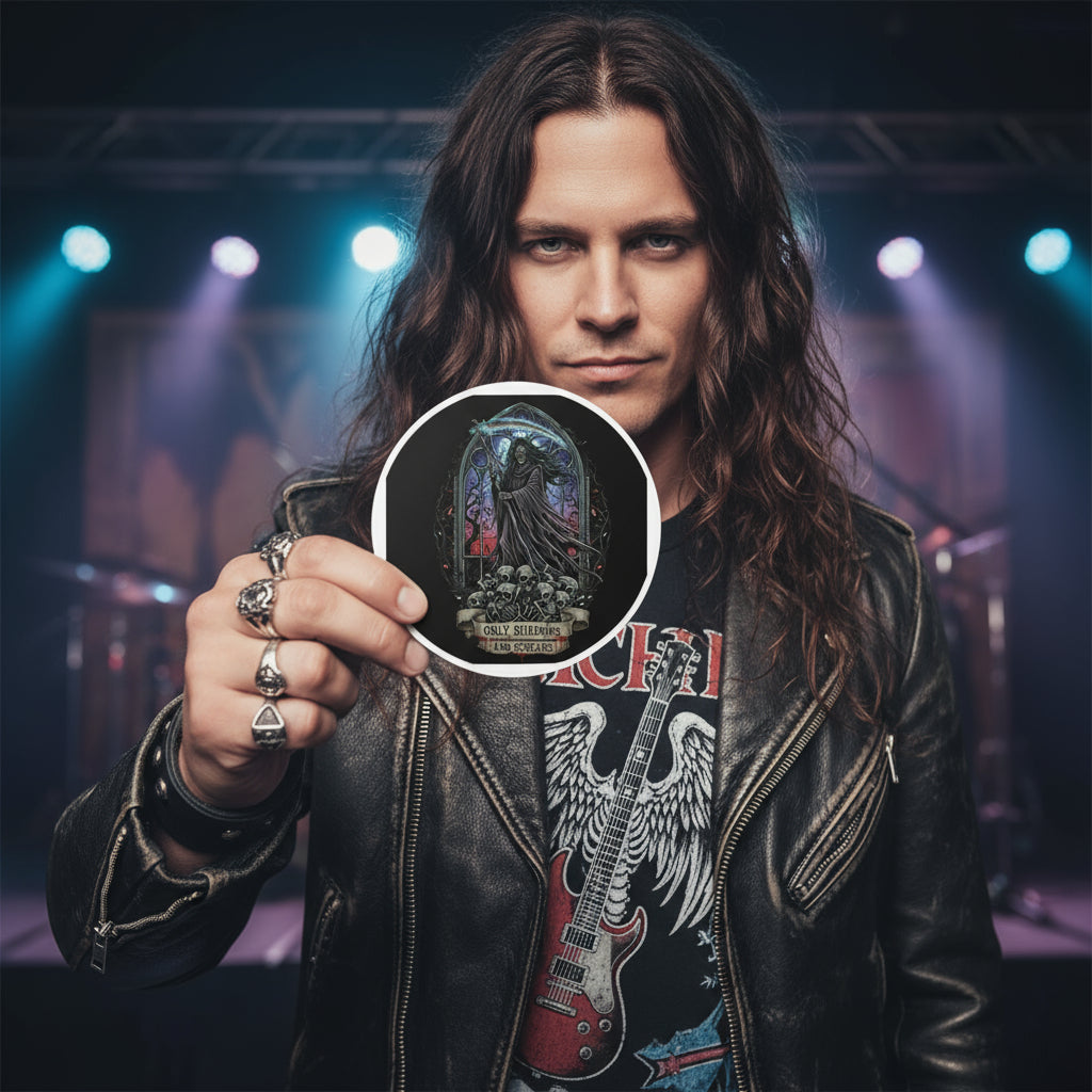 Add a touch of edginess to your belongings with these stunning round vinyl stickers. Featuring vibrant designs, these stickers bring life and color to any surface, whether it’s your laptop, water bottle, or notebook. With a smooth matte finish, they not only feel luxurious but also stand out beautifully. Perfect for those who appreciate unique art, these stickers cater to a wide audience—from students and artists to fans of gothic aesthetics. Great for personal use, they also make fabulous gifts for occasions like Halloween, birthdays, or any celebration that calls for a hint of the macabre. Elevate your style and express your individuality with these fantastic stickers!