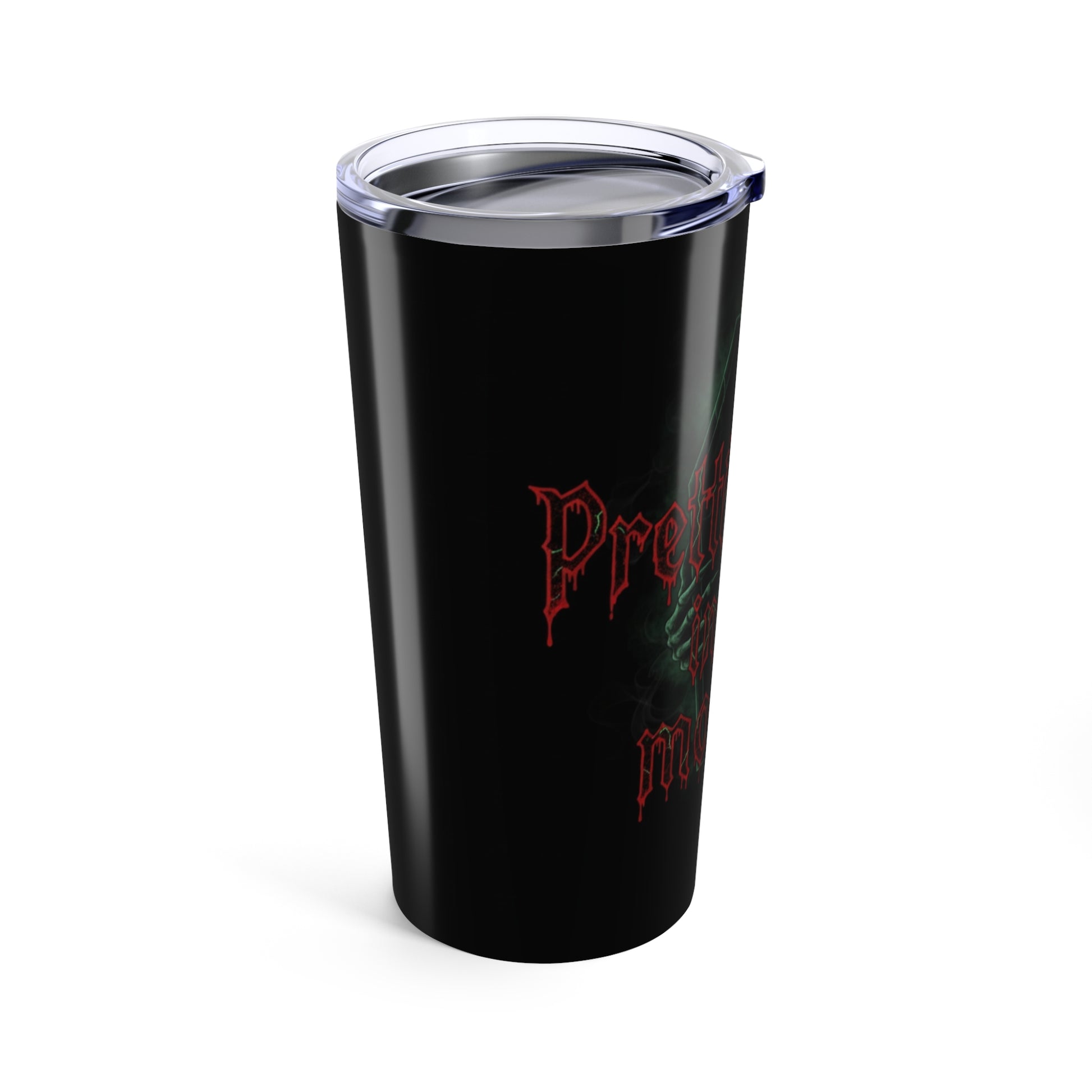 Late-night sips meet candlelit mischief. This 20oz stainless steel tumbler wears a glossy, full-wrap design of smoky green mist, eerie red lettering, and a shadowed coffin—quietly macabre, with a wink. It keeps coffee piping hot on dreary morning drives and holds iced brews through long concert nights. The clear push-on lid seals with a rubber gasket so drinks stay where they belong while you’re on the move. Durable, rust-resistant steel and dishwasher-safe construction mean this tumbler travels from the morning ritual to midnight hangouts without fuss. If you collect spooky-styled gear or want a travel cup that reads like your aesthetic, this one slips into your routine and stays.